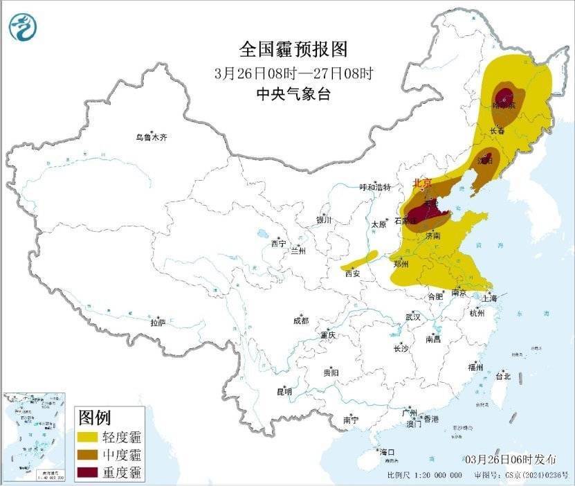 除此之外,26-29日,华北、黄淮、江淮中东部、东北地区等地大气扩散条件较差,有轻至中度霾,局地重度霾。其中,26日夜间至27日白天,华北中北部霾天气有所减弱。受冷空气影响,29日夜间起,霾天气逐渐减弱或消散。