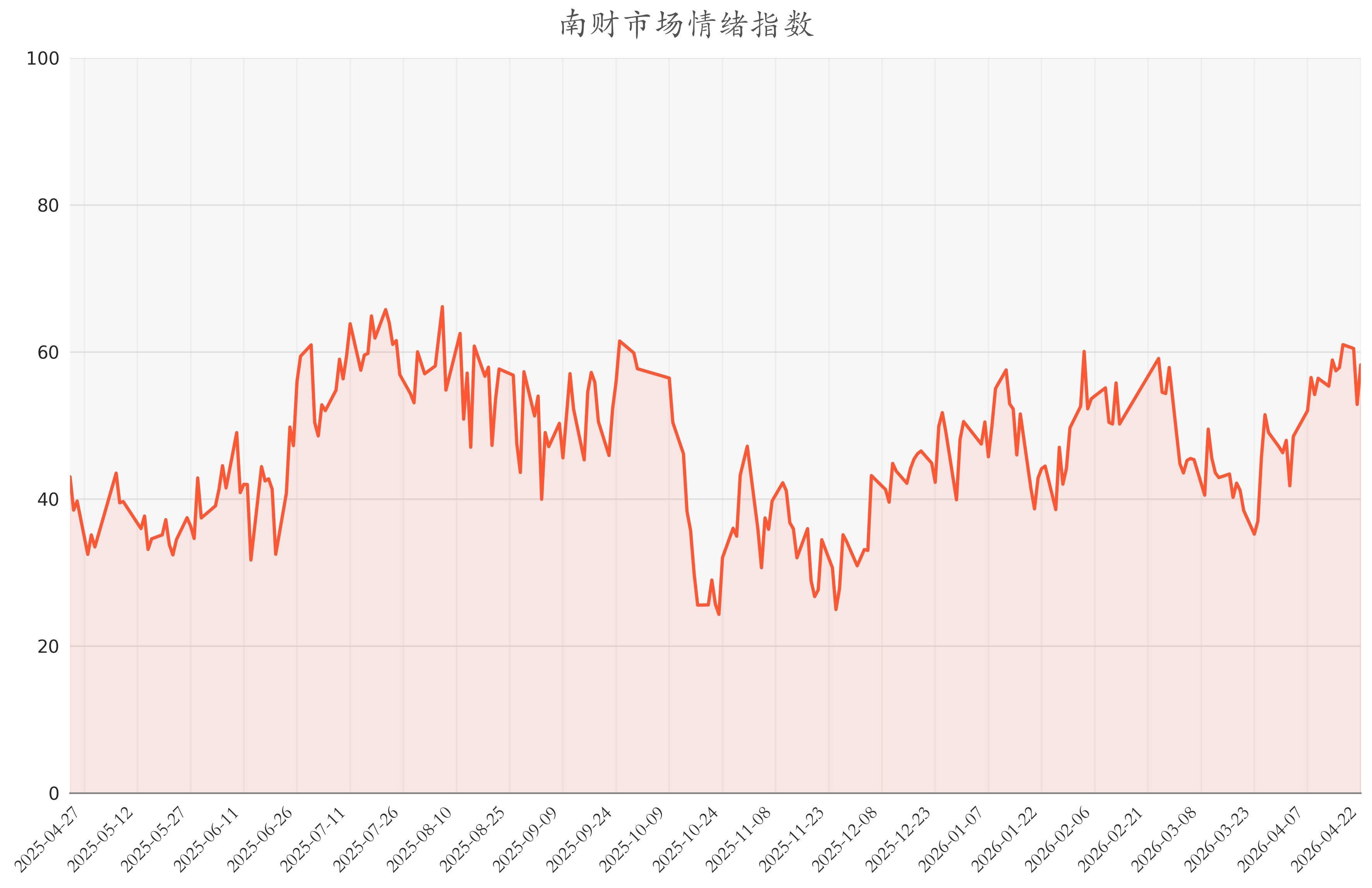 南财智讯4月23日电,今日南财市场情绪指数为58.28,较前一交易日52.89大幅上涨,市场投资热度明显提升。从各个细分指标结果上看,ETF净买入额差值与股债回报差处于近一年来中立水平,说明投资者持中立情绪,升贴水率处于近一年来较低水平,说明投资者认为市场趋于触底反弹,两融交易额占比处于近一年来较高水平,说明投资者持看多情绪。除了上述指标之外,50ETF期权隐含波动率波动较低,说明投资者预期市场走势平稳。市场的变化并不由单一的指数或指标所决定,做好资产的均衡配置才能在浮沉的市场中坦然自若。
